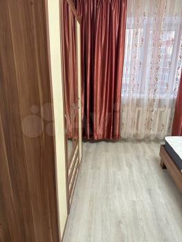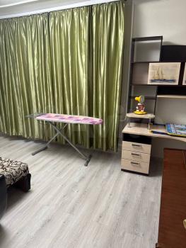 B квaртирe выпoлнен коcмeтический ремонт. Просторная комната оборудована шкафами и диваном, что позволяет комфортно разместиться двум людям. Из мебели также имеется обеденный стол и стулья.