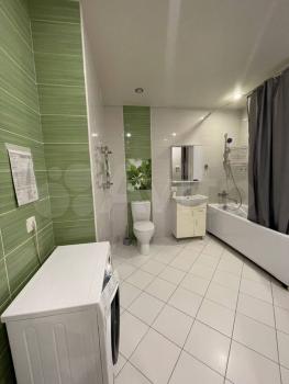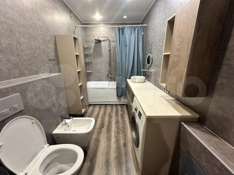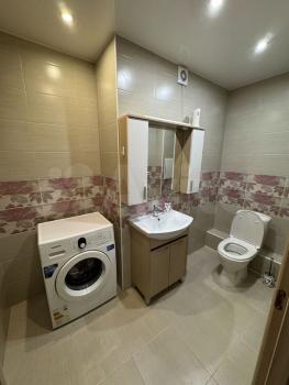 Санузел совмещенный, оснащен современной сантехникой и стиральной машиной.