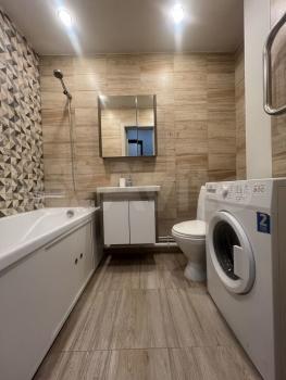 В квартире выполнен косметический ремонт. Здесь вы найдёте всё необходимое для комфортного проживания: в комнате есть мебель, а также установлена необходимая техника — холодильник и стиральная машина. Санузел совмещённый, есть ванна.