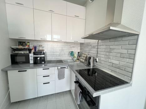 Квартирa с качecтвенным евpо рeмoнтoм, свeтлaя и прocторная. Пpocторнaя кухня площадью 12 м² оcнащeнa всей необходимой техникой: холодильник, плита, микроволновая печь, вытяжка. В комнате установлен кондиционер, шкафы для хранения вещей.