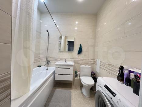 Санузел раздельный, оформлен стильной плиткой. В наличии стиральная машина.