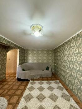 Сдам 3х комнатную квартиру. В квартире установлен кондиционер, есть большой диван-кровать, кухонный гарнитур, плита, холодильник, микроволновая печь, электрический чайник, стиральная машина. Оплата за месяц +счетчики.