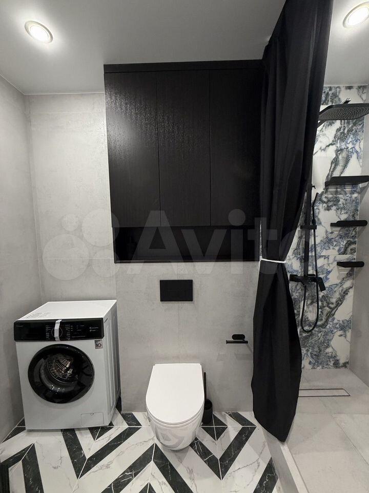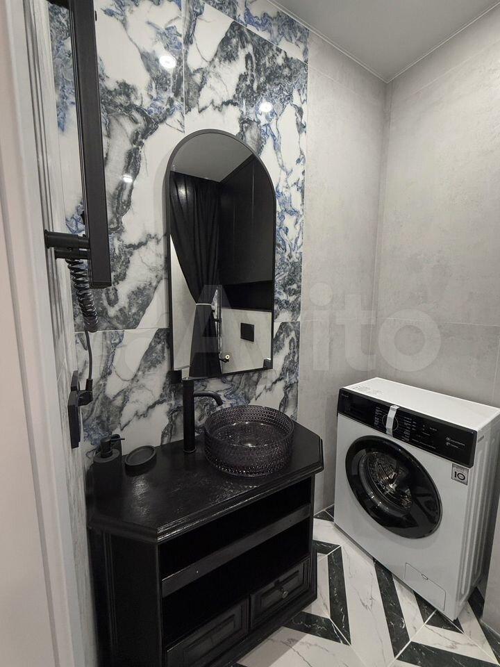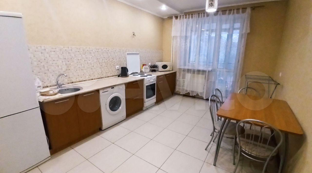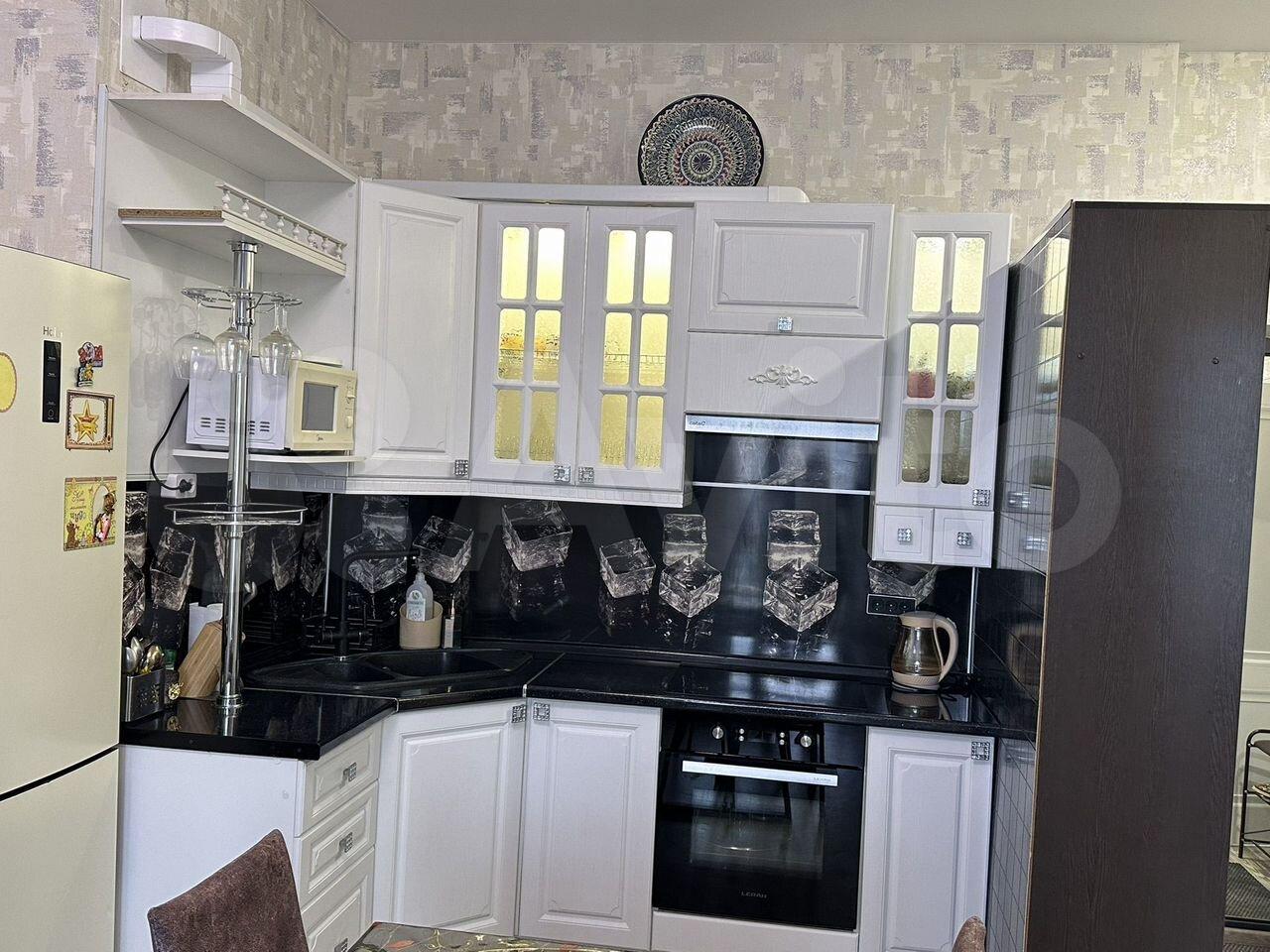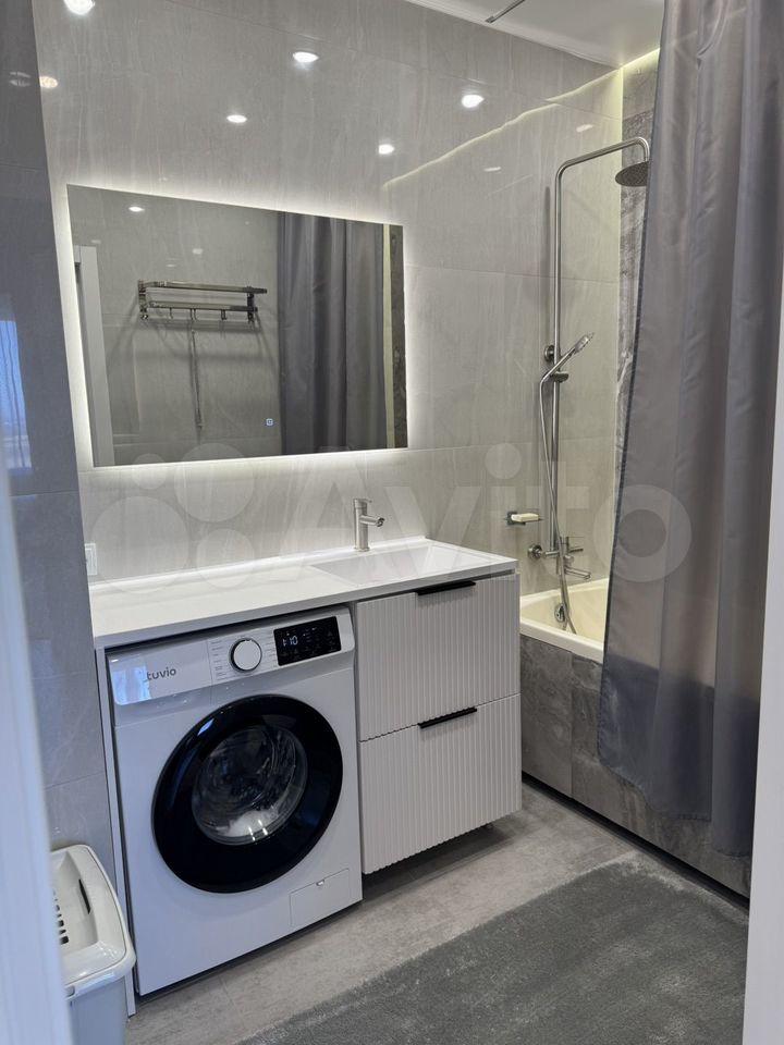 Кухня оснащена современной бытовой техникой, включая холодильник, микроволновую печь и электрическую плиту. В ванной комнате установлена стиральная машина и совмещенный санузел с качественной сантехникой.