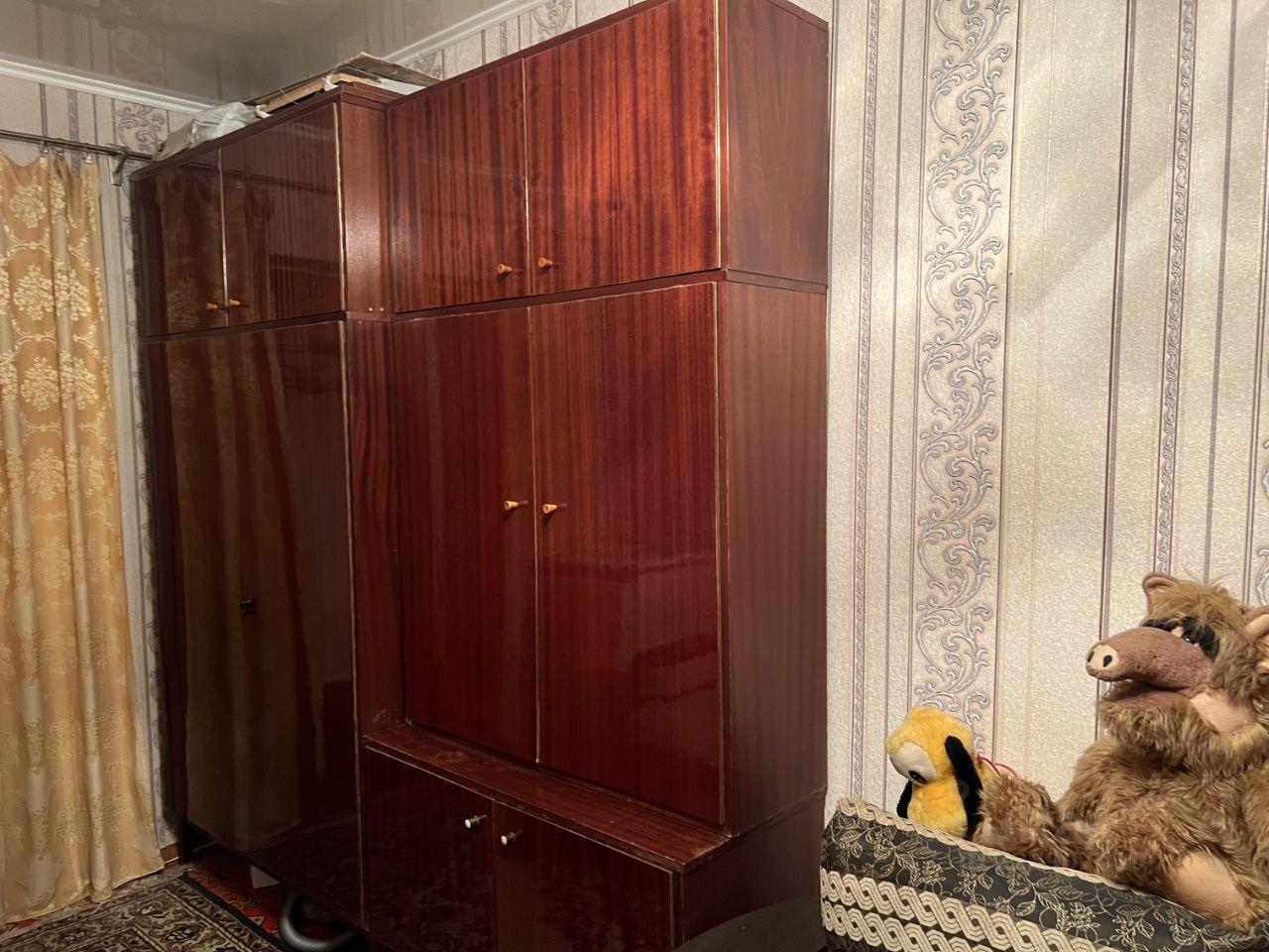 мебель: двуспальная кровать, раскладной диван и кресло, вместительный шкафкупе, обеденный стол и стулья;