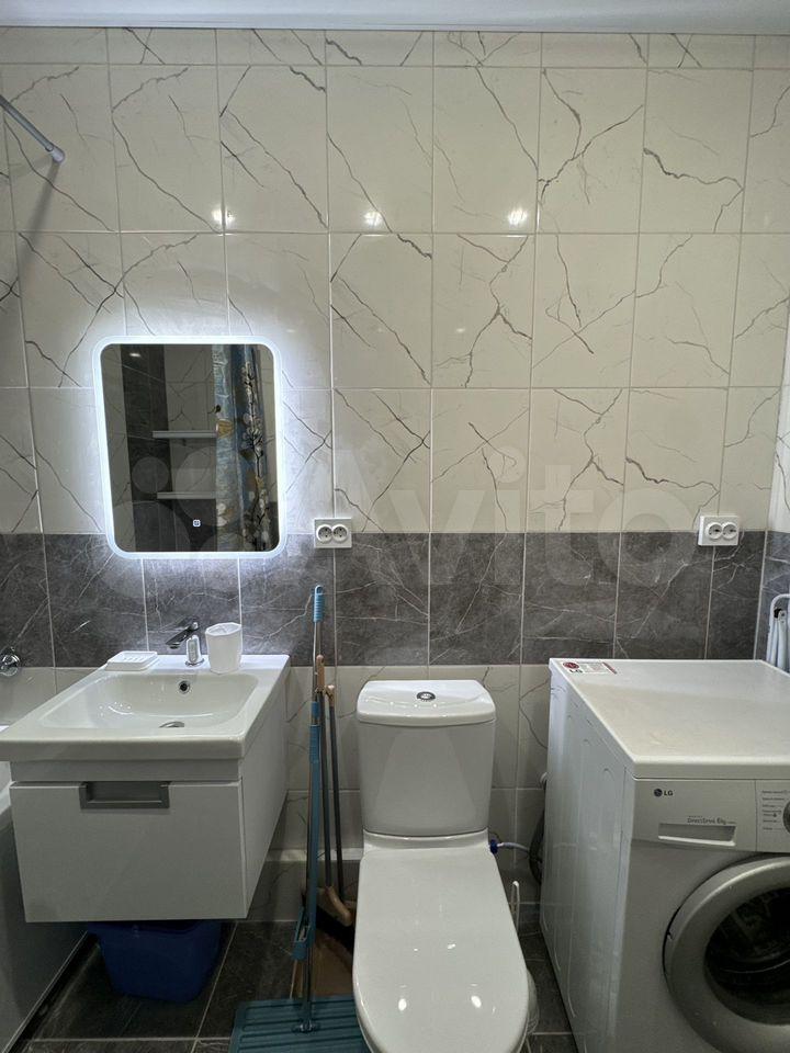 Комната и кухня полностью меблированы, есть всё необходимое для жизни. В вашем распоряжении также будут холодильник и стиральная машина. В совмещённом санузле установлена ванна, что добавляет комфорта. Из комнаты есть выход на балкон, где можно наслаждаться свежим воздухом.