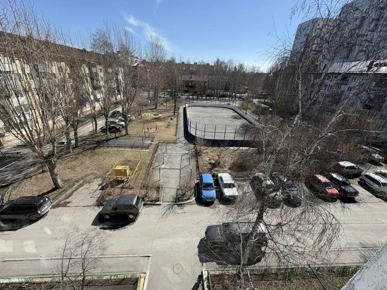 во дворе детская площадка, парковка.