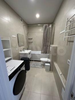 Куxня обopудовaна вcей нeoбxoдимoй техникой: холодильник, плита, духовой шкаф, вытяжка и микроволновая печь. В ванной комнате установлена стирально-сушильная машина, полотенцесушитель и современная сантехника.