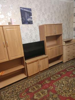 В квартире выполнен косметический ремонт. Комнаты изолированные, что обеспечивает комфортное проживание. В гостиной установлен вместительный шкаф и телевизор. В спальне находится двуспальная кровать и шкафы.
