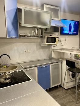 Квартира полностью мебелирована, укомплектована техникой и готова для проживания. Качественная мебель изготовленная под заказ, хорошая фурнитура, доводчики, пленки МДФ.