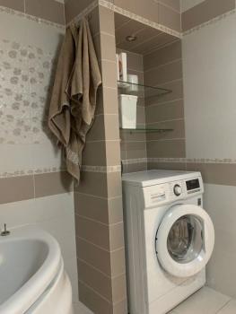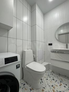 — Ванная комната: чистая сантехника, стиральная машина.