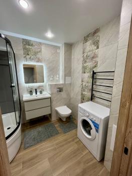 Новый дизайнерский ремонт, качественная новая техника, все есть: посудомоечная, холодильник, духовка, варочная, микроволновка, чайник, стиральная, водонагреватель, телевизор, кондиционер, робот пылесос, фен.