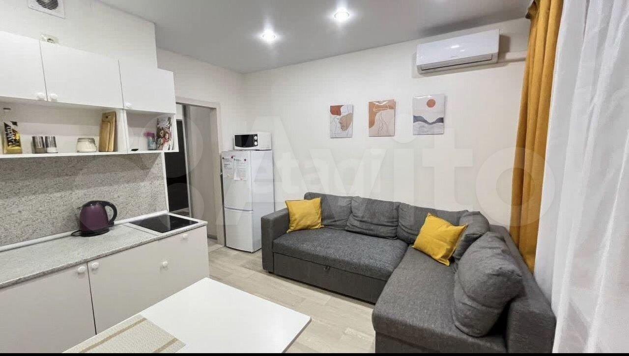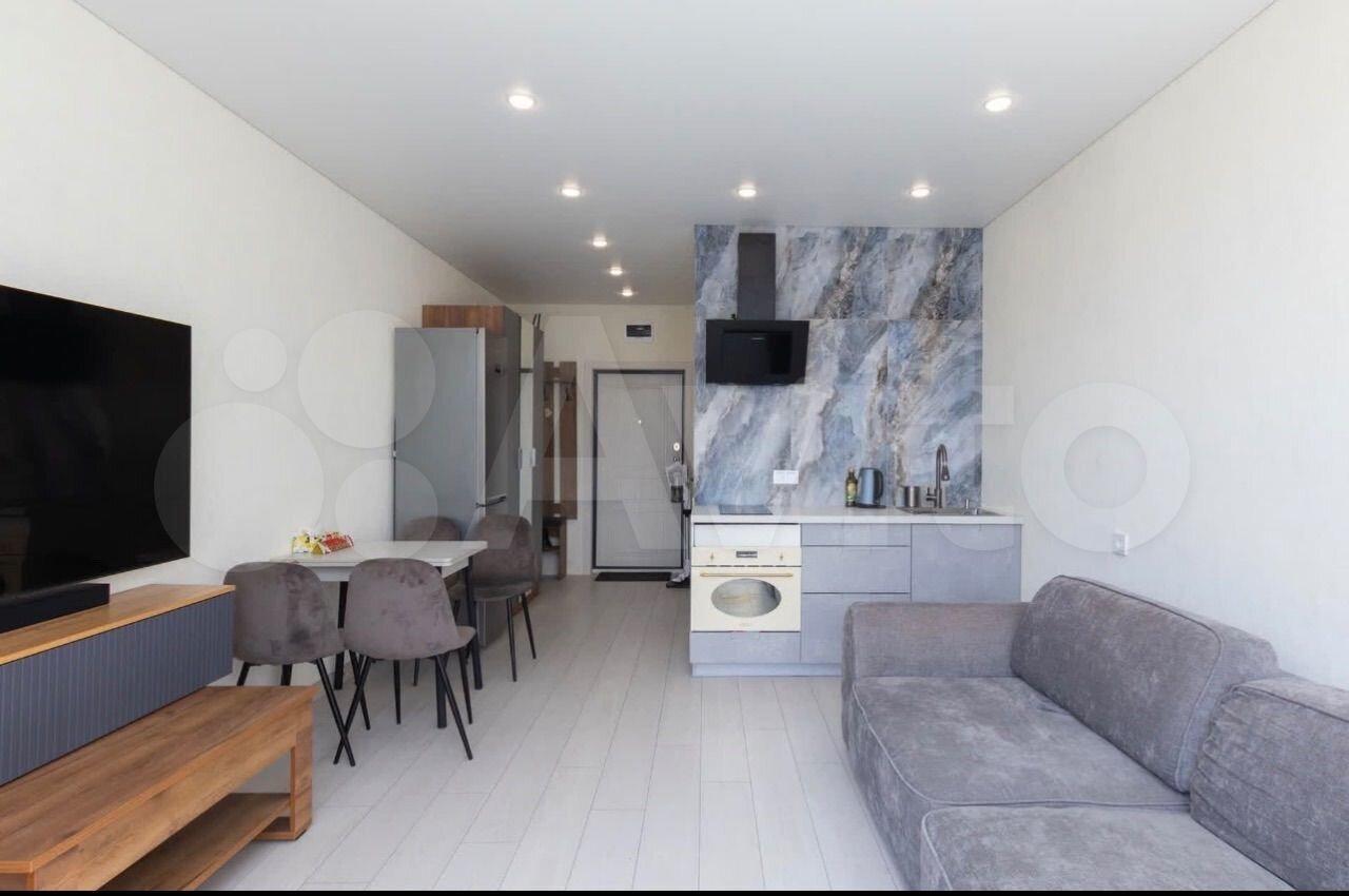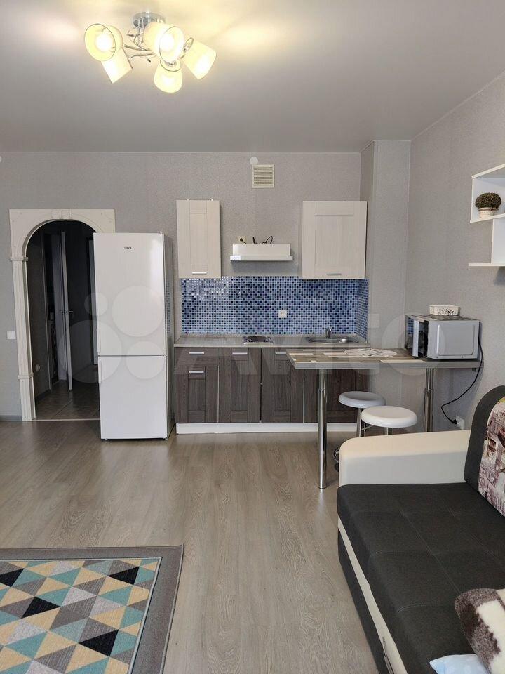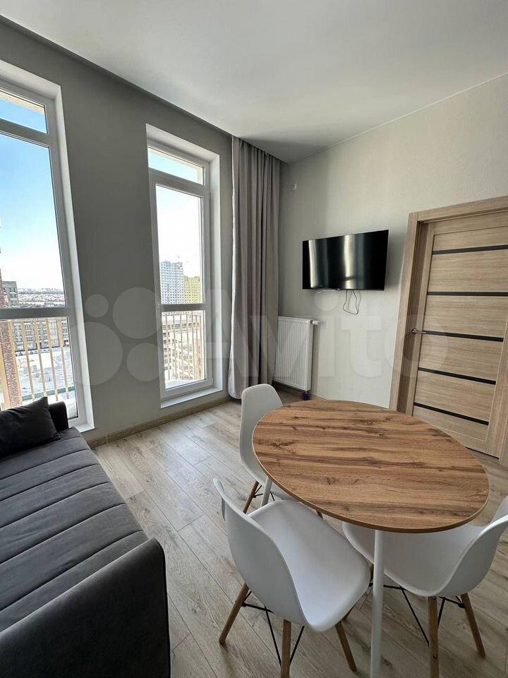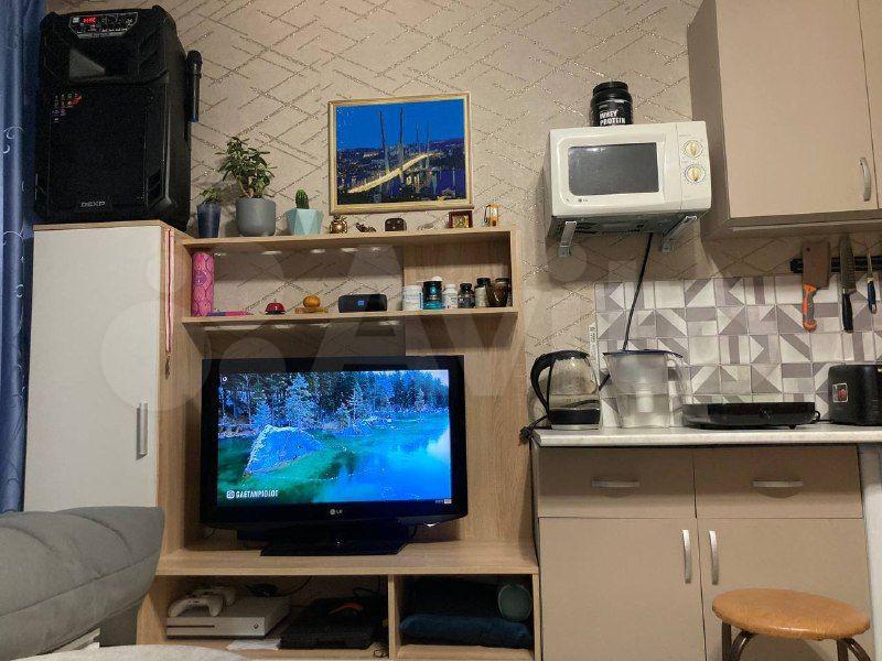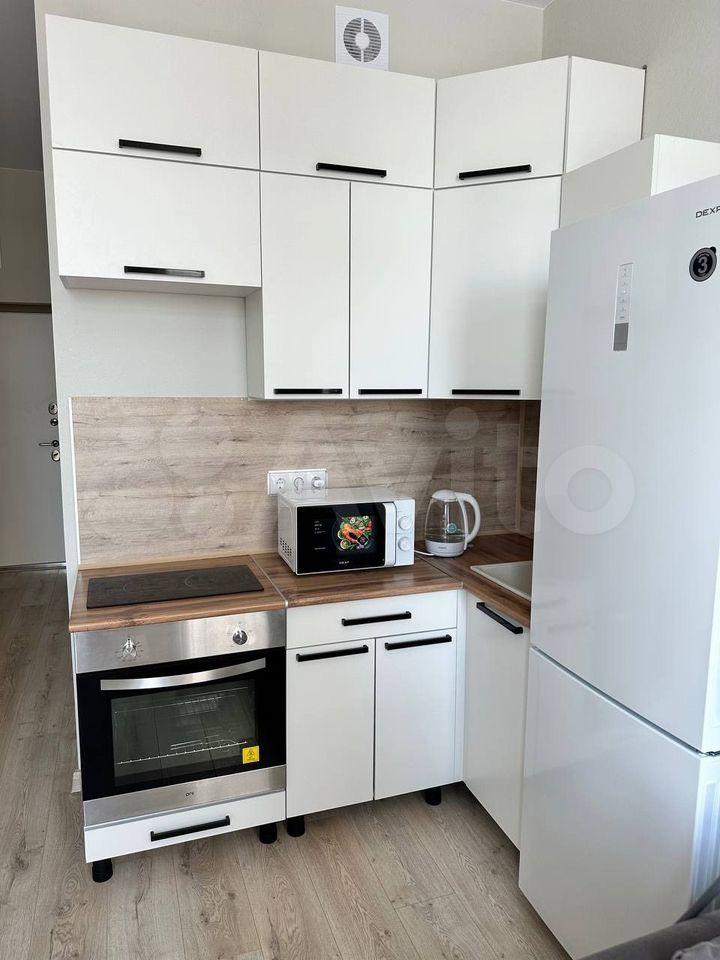 Студия укомплектована необходимой мебелью, техникой, посудой и прочими принадлежностями. Всё новое, никто не жил. Квартира уютная, теплая, светлая. Пространство продумано до мелочей, подойдет для комфортного проживания одного человека или пары.