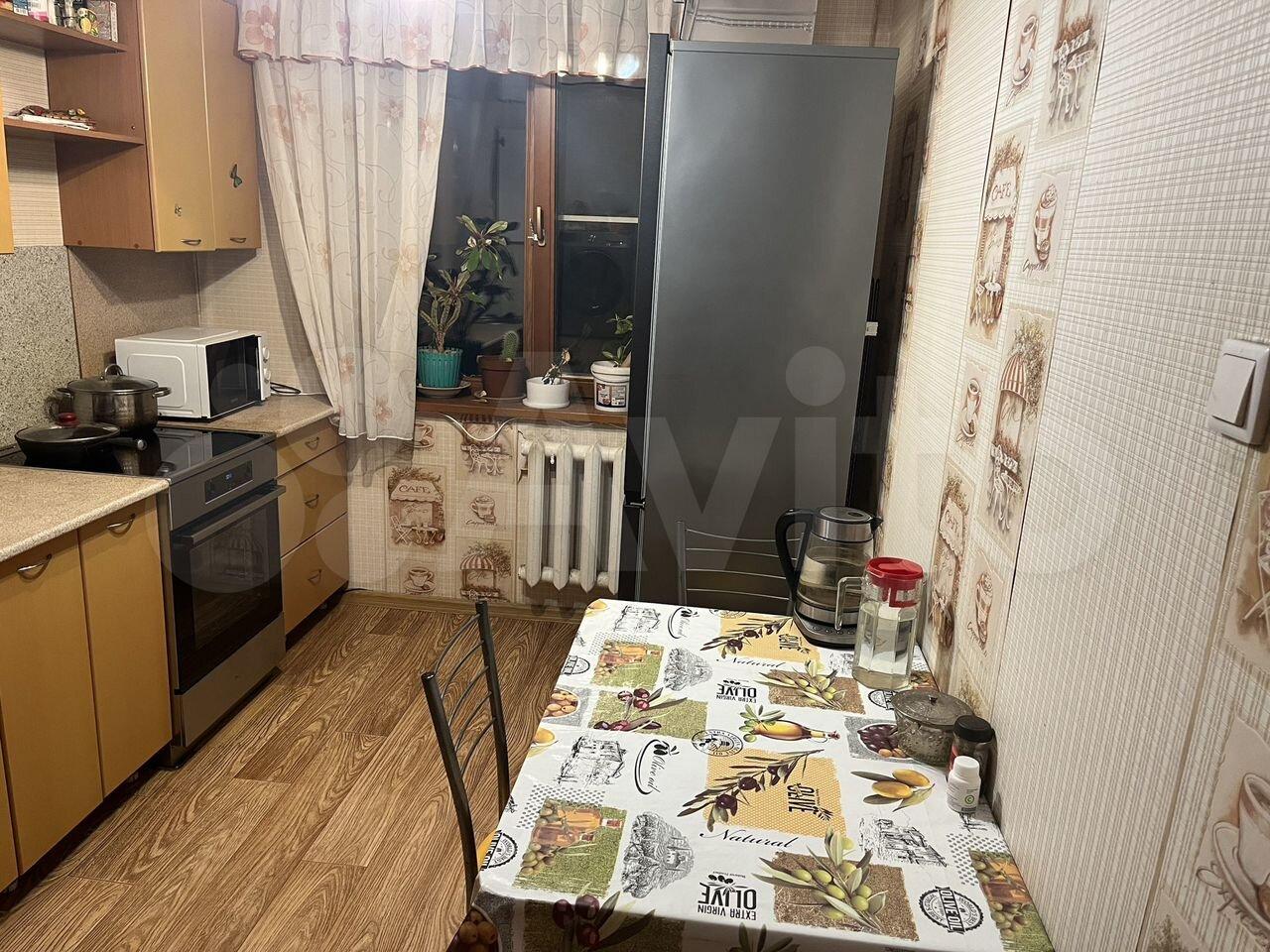 В квартире выполнен косметический ремонт. Просторная кухня оснащена необходимой бытовой техникой, включая холодильник и микроволновую печь. В гостиной установлен телевизор и шкаф для хранения вещей.