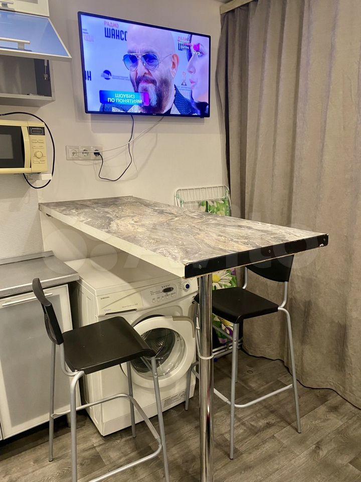 Кухня оборудована необходимой бытовой техникой, включая холодильник и плиту. Ванная комната совмещенная, оснащена ванной и стиральной машиной.