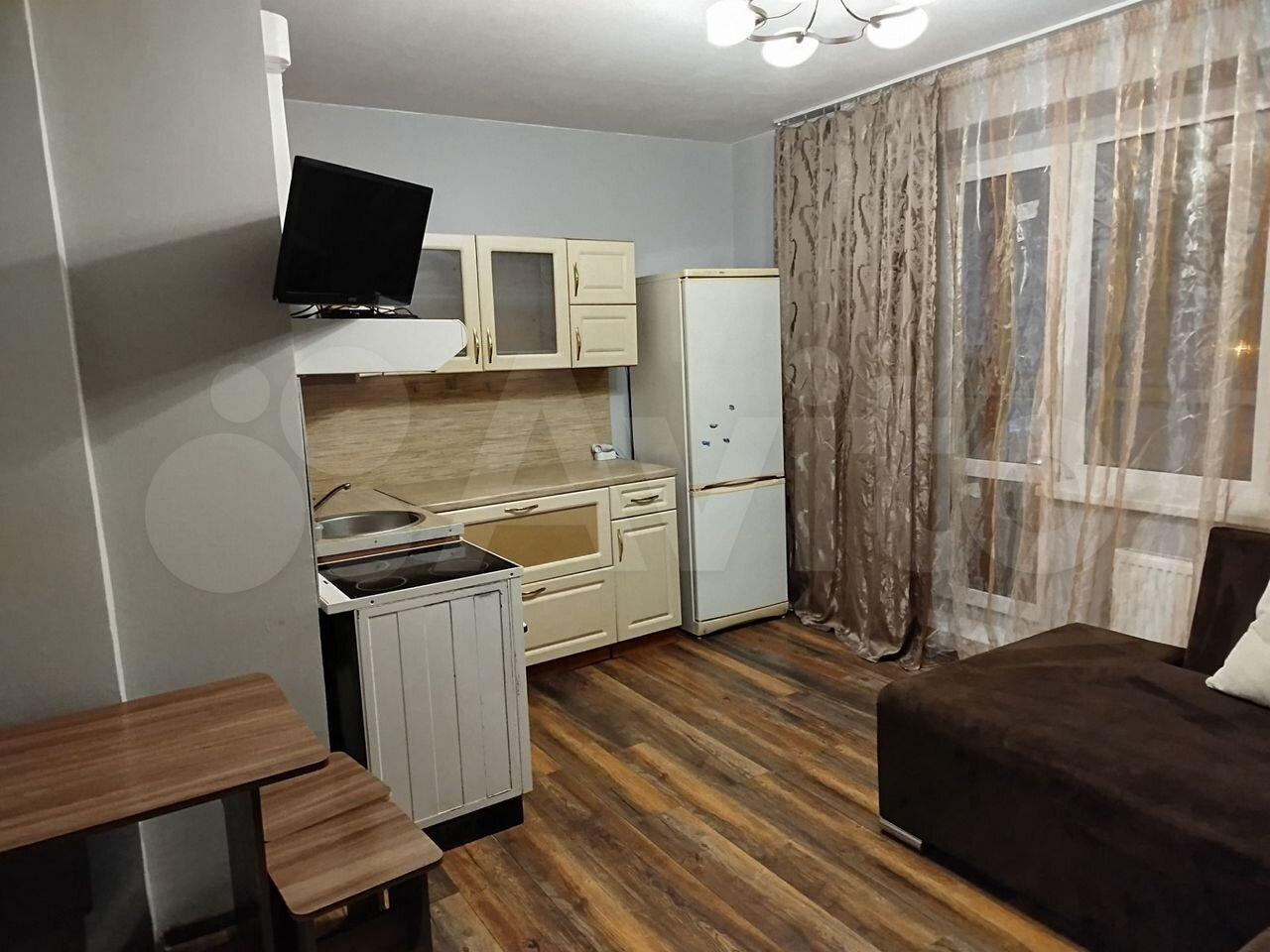 Квартира с косметическим ремонтом, полностью готова для комфортного проживания. В комнате и на кухне есть вся необходимая мебель. Из техники — холодильник, телевизор и стиральная машина. Совмещённый санузел оборудован ванной. Балкон застеклен.