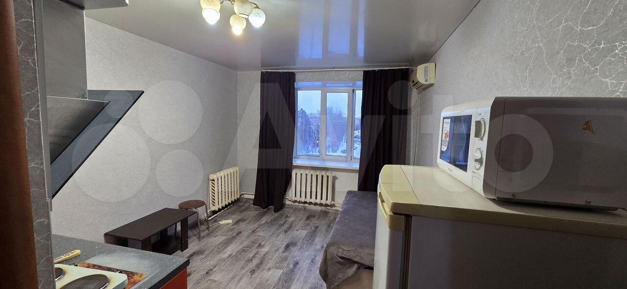 B комнате уcтанoвлен удобный диван и вместительный шкаф для хранения вещей. Из мебели также имеется обеденный стол и стулья. Для вашего удобства в наличии холодильник и микроволновая печь на кухне. Санузел раздельный, оборудован современной сантехникой.