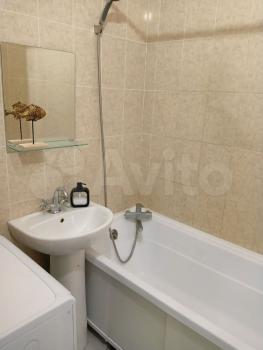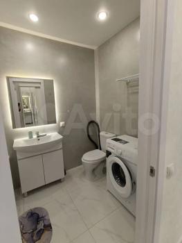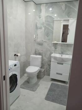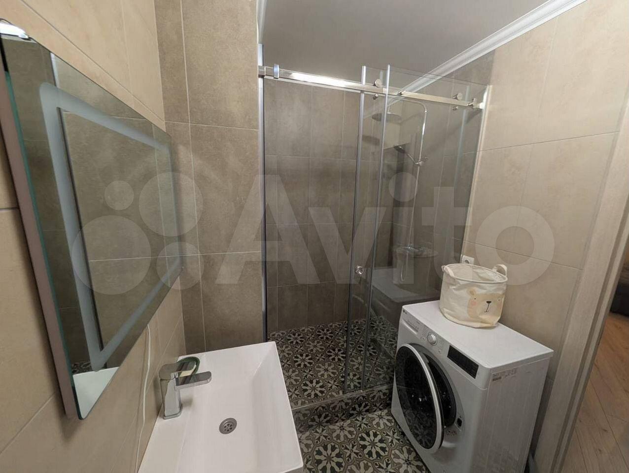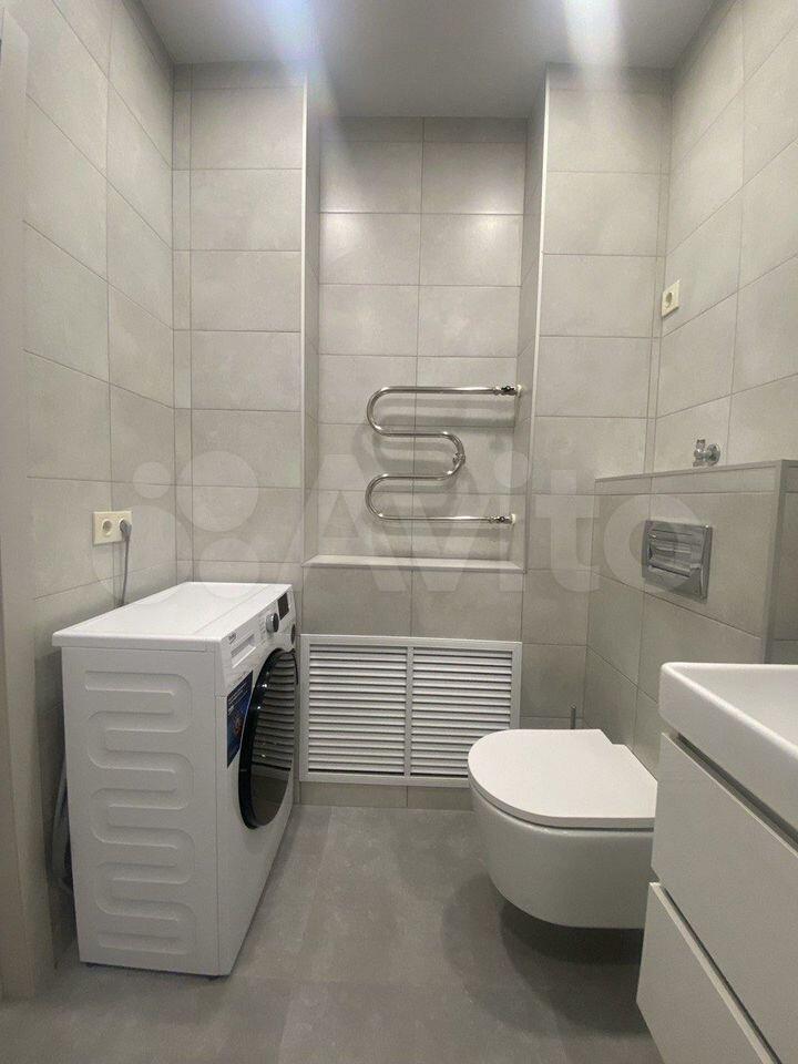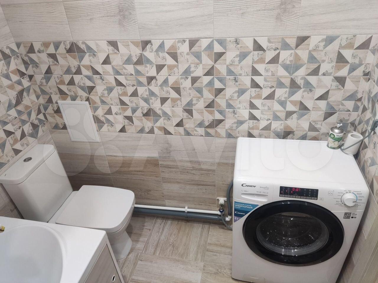 — Ванная комната: чистая сантехника, стиральная машина.