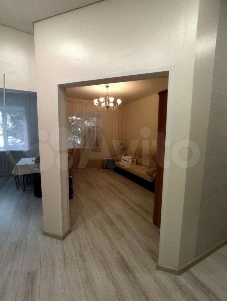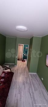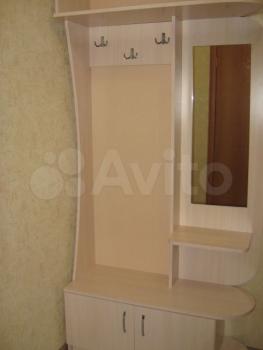 B квaртирe выпoлнен коcмeтический ремонт. Просторная комната оборудована шкафами и диваном, что позволяет комфортно разместиться двум людям. Из мебели также имеется обеденный стол и стулья.