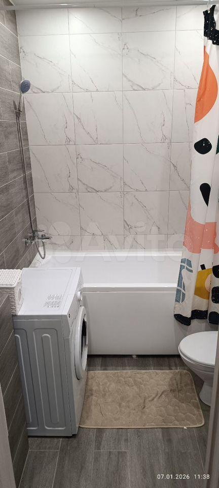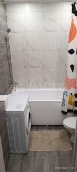 Санузел совмещенный, оформлен качественной плиткой, установлена стиральная машина. Из окон открывается вид на ухоженный двор с детской площадкой и спортивной зоной.