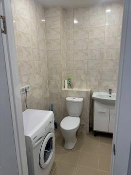 В квартире выполнен свежий евро ремонт. Просторная кухня оборудована необходимой техникой: холодильник, варочная панель и духовая печь. Из мебели — вместительные шкафы и обеденный стол. Санузел совмещённый, оснащён современной сантехникой и стиральной машиной.