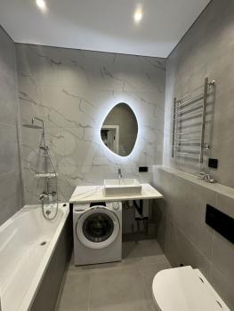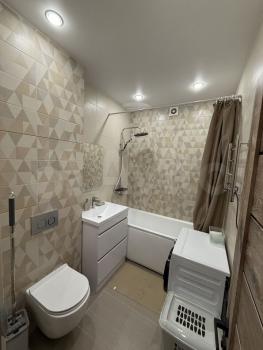 В квартире сделан свежий ремонт,имеется 2х спальная кровать,диван, 3х дверчатый шкаф,шкаф купе с двумя зеркалами,журнальный столик,кухонный гарнитур,варочная панель,холодильник,СВЧ печь,стиральная машина,сушилка для одежды, просторный совмещенный санузел оборудован ванной.