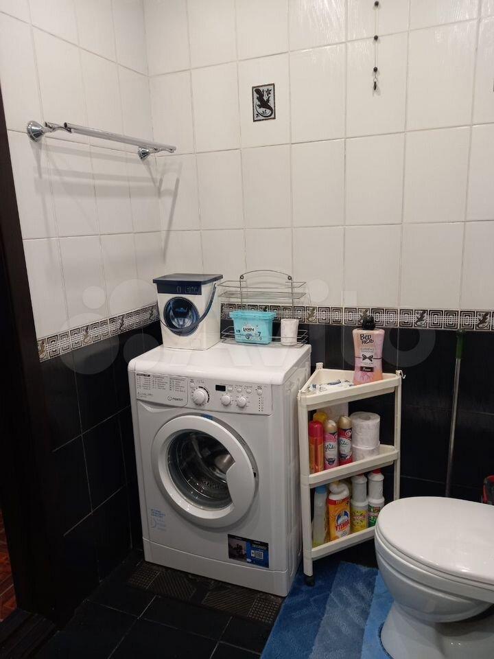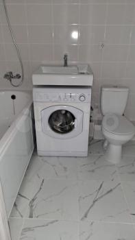 Санузел совмещенный, оформлен плиткой, есть стиральная машина.