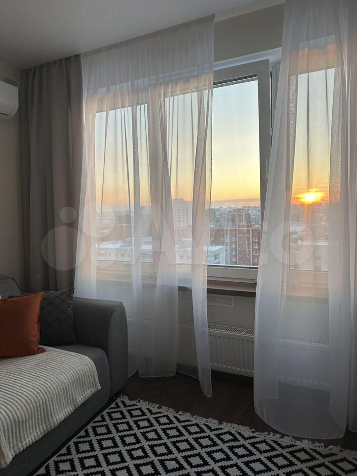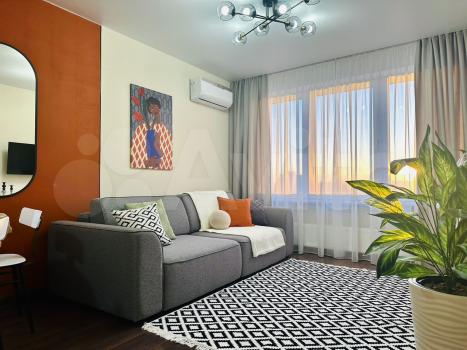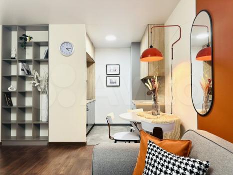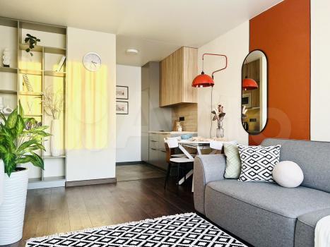 Сдается уютная однокомнатная квартира площадью 33.9 кв. м в современном доме 2016 года постройки. Квартира находится на 4-м этаже 16-этажного здания. Высокие потолки (2.7 метра) и окна, выходящие на улицу, создают ощущение простора и света.