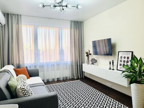 Квартира полностью соответствует требованиям современного образа жизни, оснащена всем необходимым для комфортного проживания. В шаговой доступности расположены такие популярные торговые центры, как "Гудвин", "Магеллан", а также бизнес-центры и офисные здания.