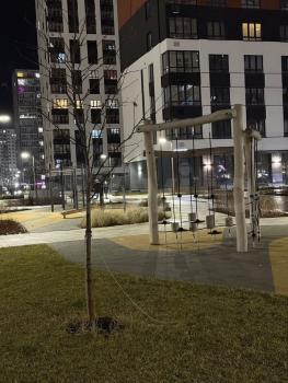 Во дворе спортивная и детская площадки.