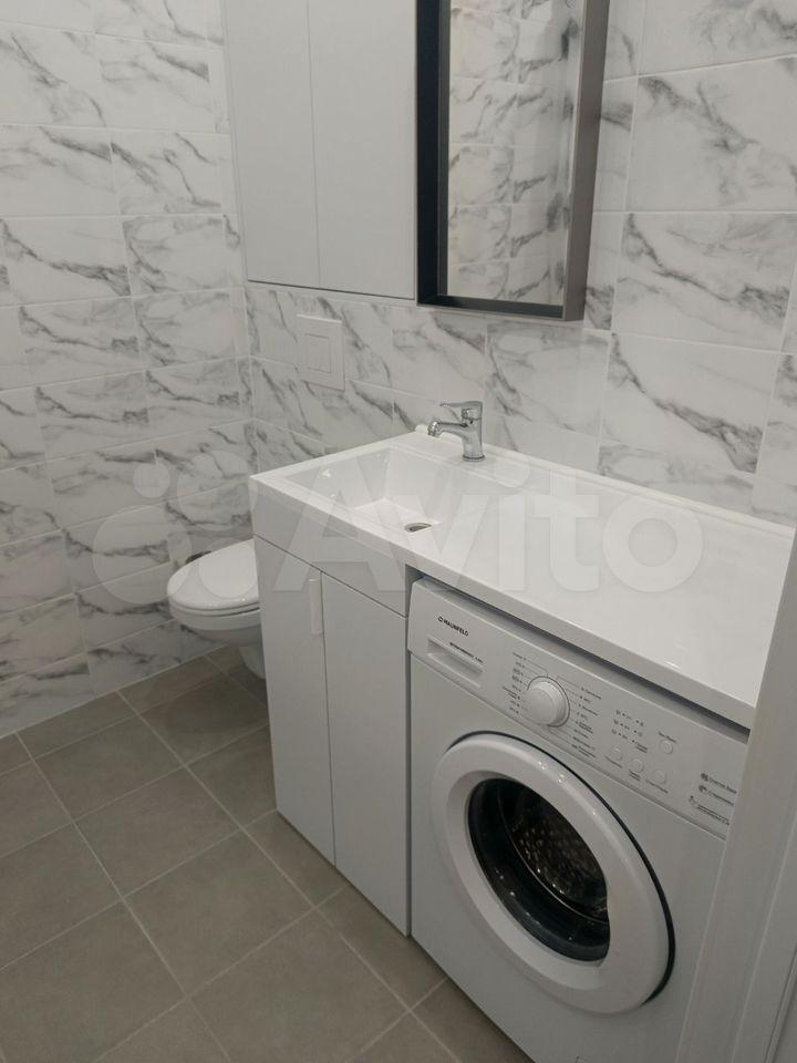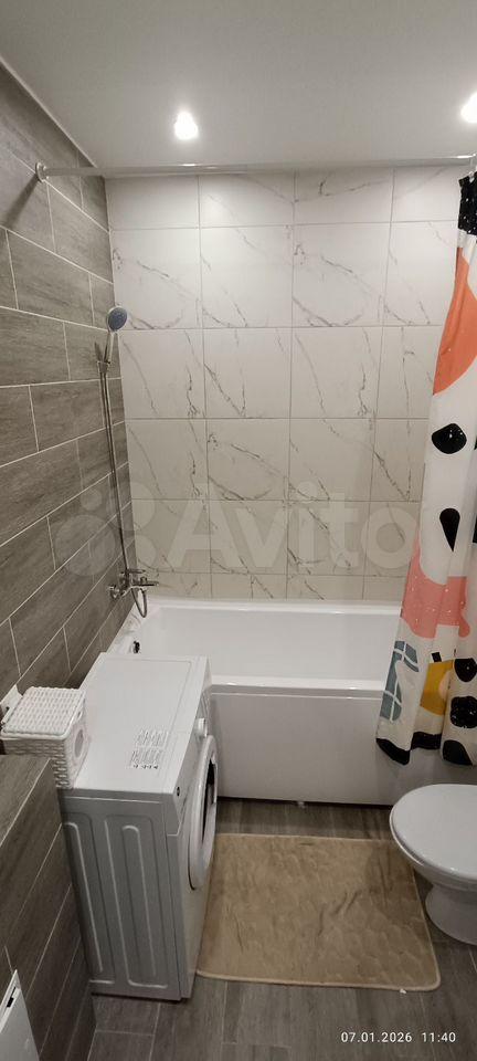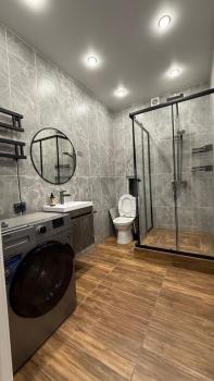 Кухня оснащена необходимой бытовой техникой, включая холодильник, микроволновую печь и стиральную машину. Ванная комната совмещённая, с современной сантехникой и стиральной машиной.