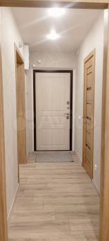 В коридоре (14 кв.м.) вместительный шкаф-купе, вешалка для одежды, тумба;
