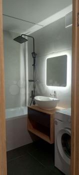 Сдам 1- комнатную квартиру с новым современным ремонтом на длительный срок. В квартире есть всё необходимое для комфортного проживания: бытовая техника (холодильник, электролита, вытяжка, стиральная машина, полотенцесушутель, утюг; телевизор - по договоренности) и мебель (диван раскладывается, кухонный гарнитур, стол и стулья, шкаф очень вместительный в коридоре, шкаф в ванной комнате). В квартире очень тепло и уютно, тёплый пол. Имеется большой застекленный балкон. На площадке кладовая площадью 2 м. кв. Подключение интернета и ТВ обсуждается. Микрорайон новый, в пешей доступности- остановка, магазины, аптеки, сто и мн др. Оплата 30000 + счетчики (свет, вода). Залог 15000 Желательно молодой паре.