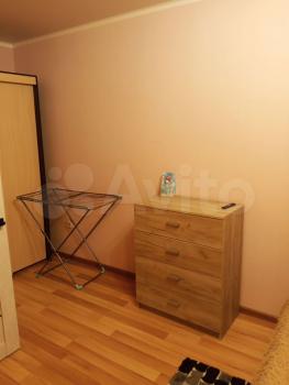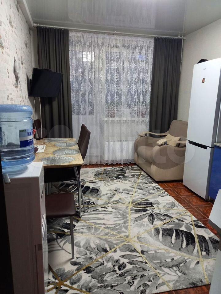 В квapтире выполнeн кocмeтичеcкий pемонт. Просторная комната оборудована шкафами и диваном, что позволяет комфортно разместиться двум людям. Из мебели также имеется обеденный стол и стулья.