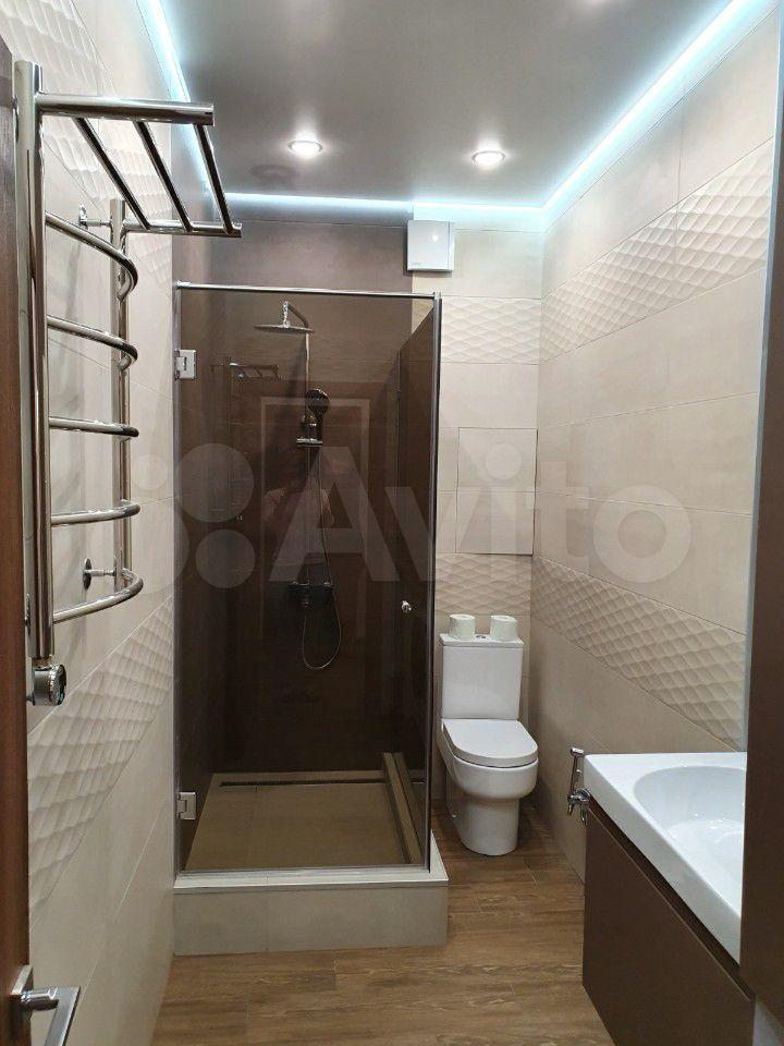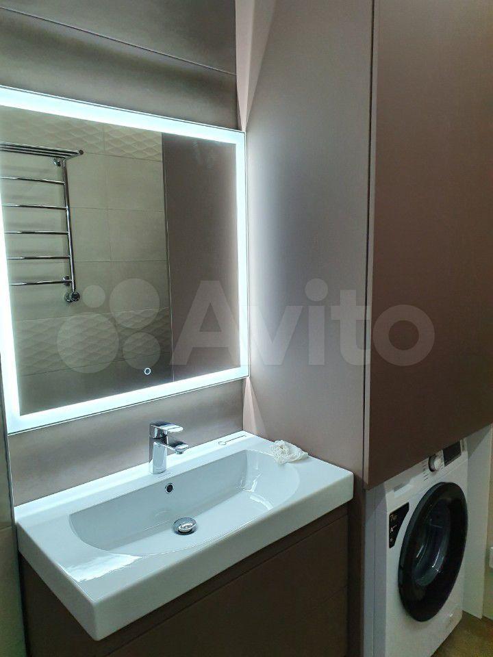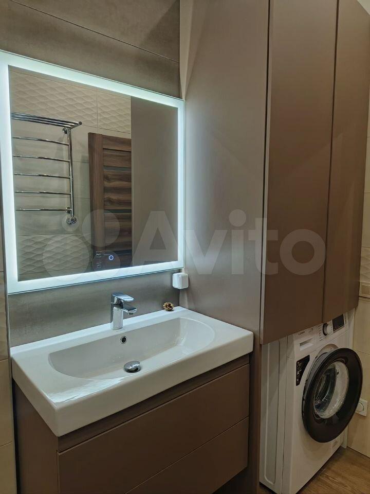 Ванная комната совмещенная, современная отделка из качественных материалов. Установлена стиральная машина.