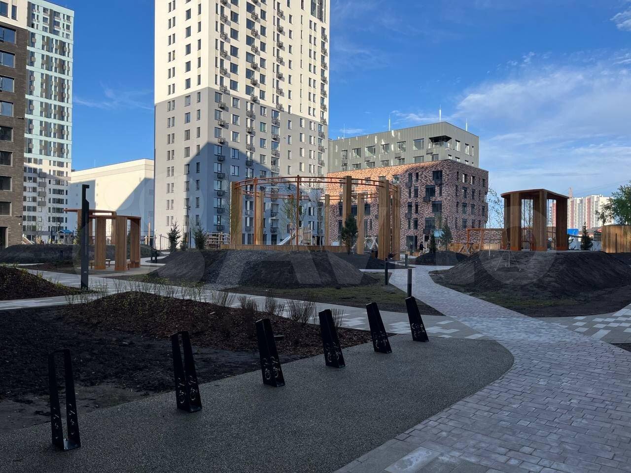 ? У дома автопарковка с одной стороны и современный двор с другой.