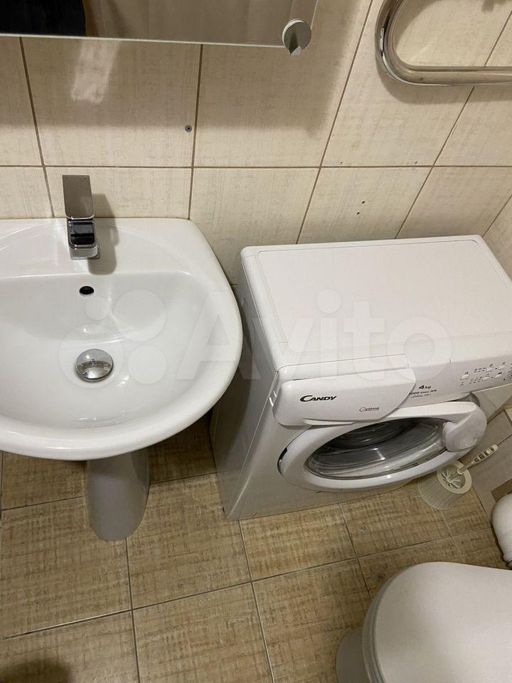 В спальне большая двуспальная кровать и вместительный шкаф для хранения вещей. В прихожей предусмотрены удобные полки и шкафы для верхней одежды. Санузел совмещённый, оборудован современной сантехникой и стиральной машиной. На период отключения горячей воды предусмотрен бойлер.