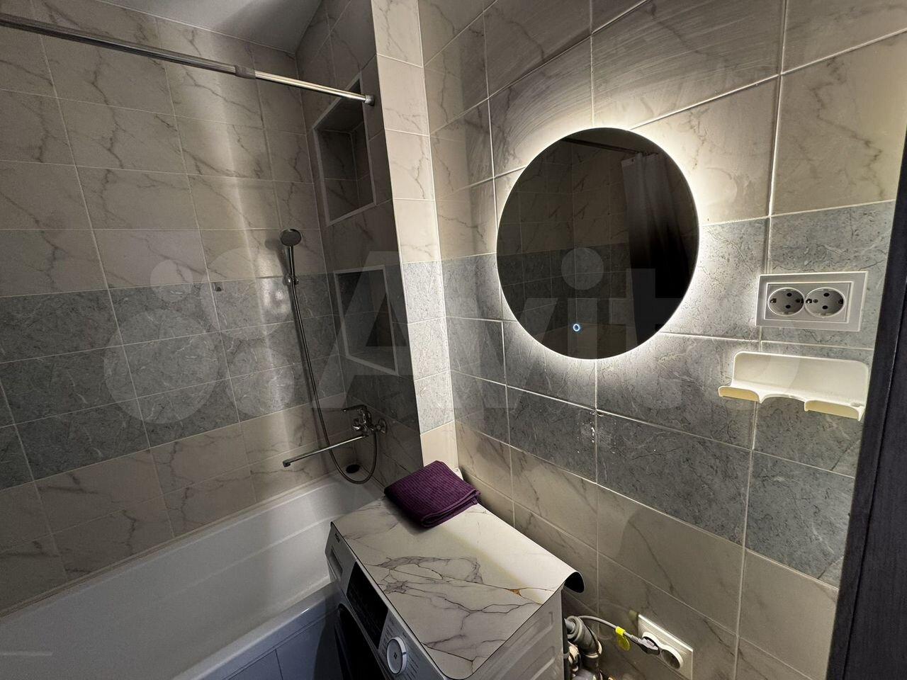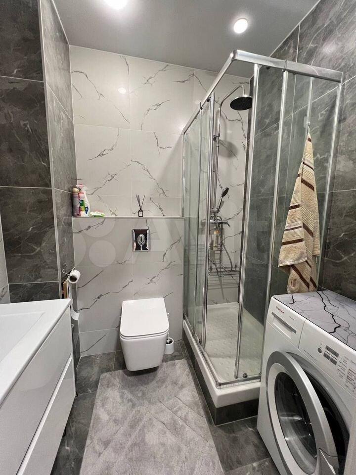 Ванная оснащена стиральной и сушильной машиной.