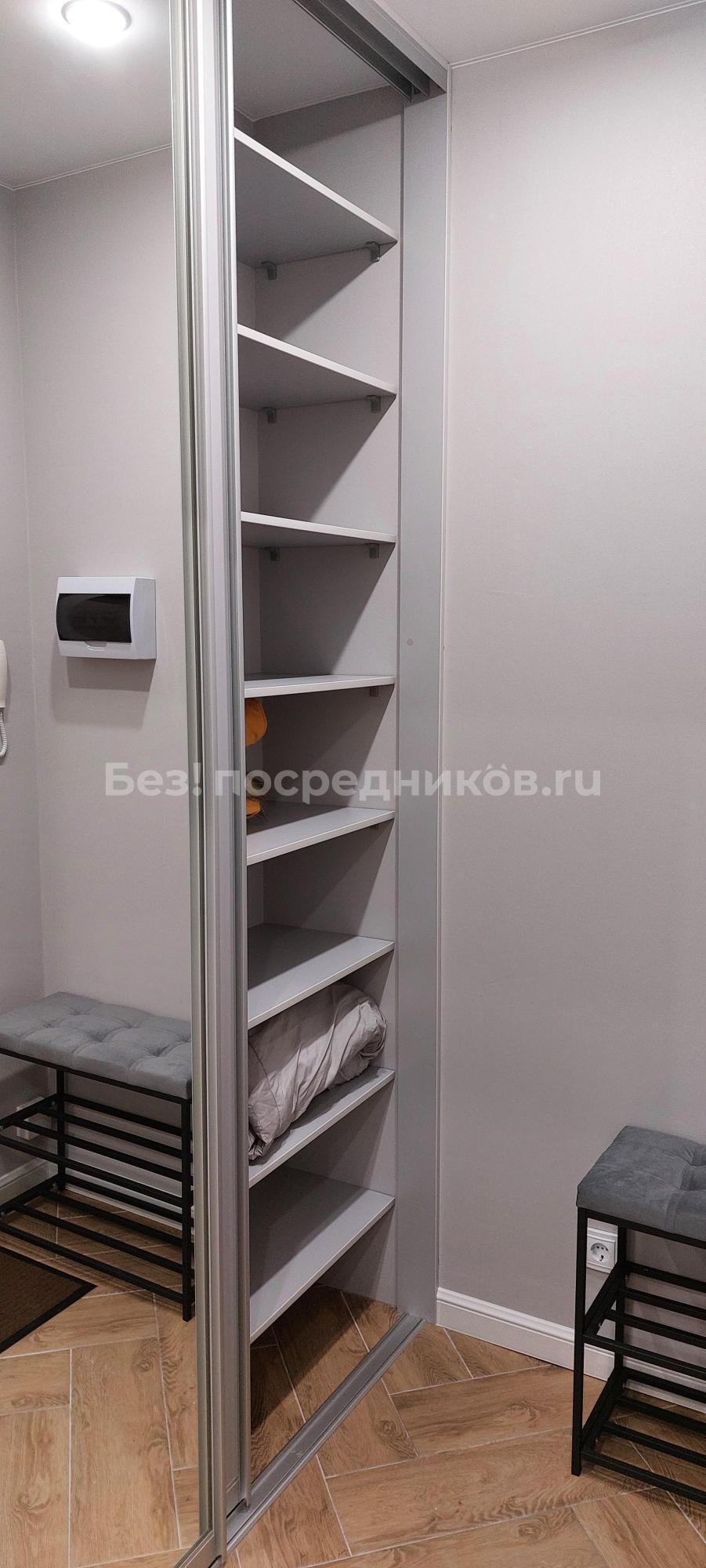 В квартире есть всё необходимое для комфортного проживания - бытовая техника и большая встроенная система хранения, есть кондиционер