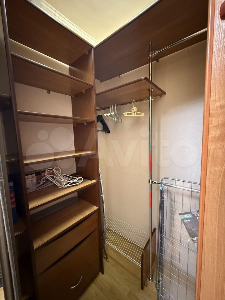 Из мебели: двуспальная кровать, два дивана, стол кухонный + 4 стула; компьютерный стол, стеллаж, кухонный гарнитур, большая гардеробная, обувница в прихожей.