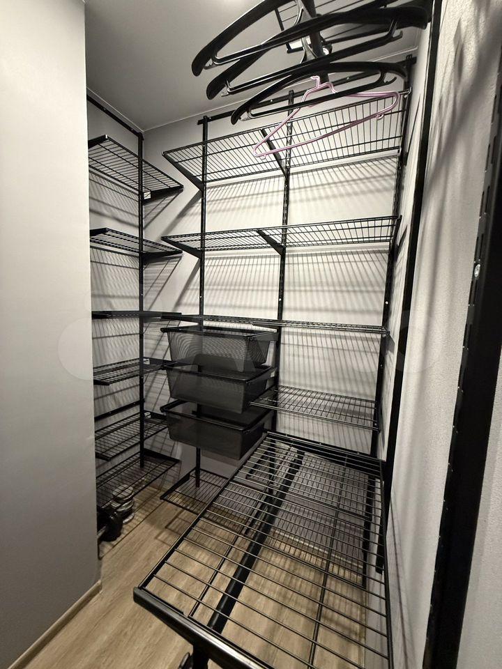 Отдельная гардеробная и вместительный шкаф при входе. Есть балкон, в кухне-гостиной окна в пол. Диван в гостиной раскладывается.