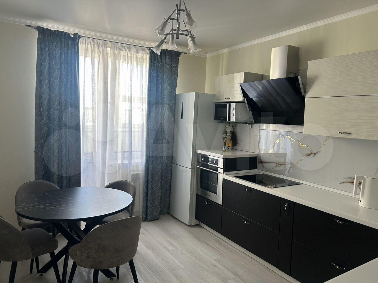Просторная кухня оснащена всей необходимой техникой, включая холодильник и плиту. В квартире выполнен качественный ремонт.
