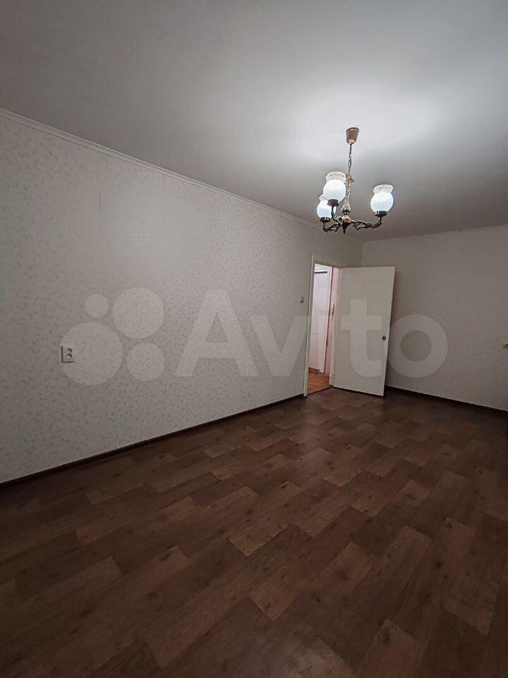 В квартире есть кухня, плита, холодильник, стиральная машина. Жилая комната свободна полностью, есть 1 диван.