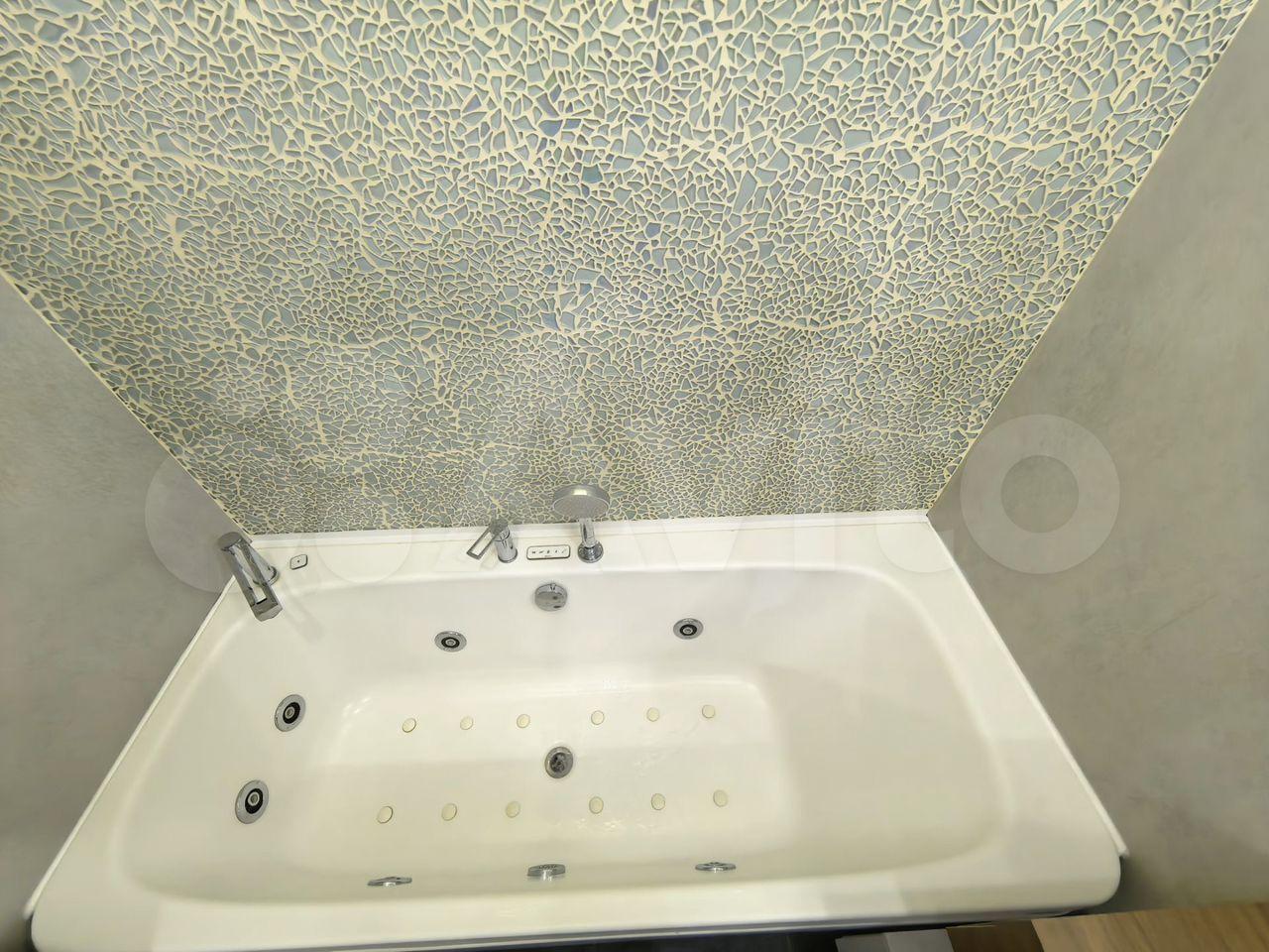 Квартира с огромной ванной комнатой, в которой расположен тропический душ и ванная с гидромассажем.