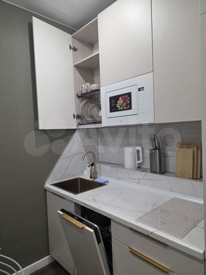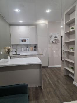 На кухне вся встроенная бытовая техника, белый глянцевый кухонный гарнитур с доводчиками, хороший холодильник, не требующий разморозки. Лоджия отделана в стиле лофт. Квартира полностью меблированная, проведён интернет и кабельное ТВ.