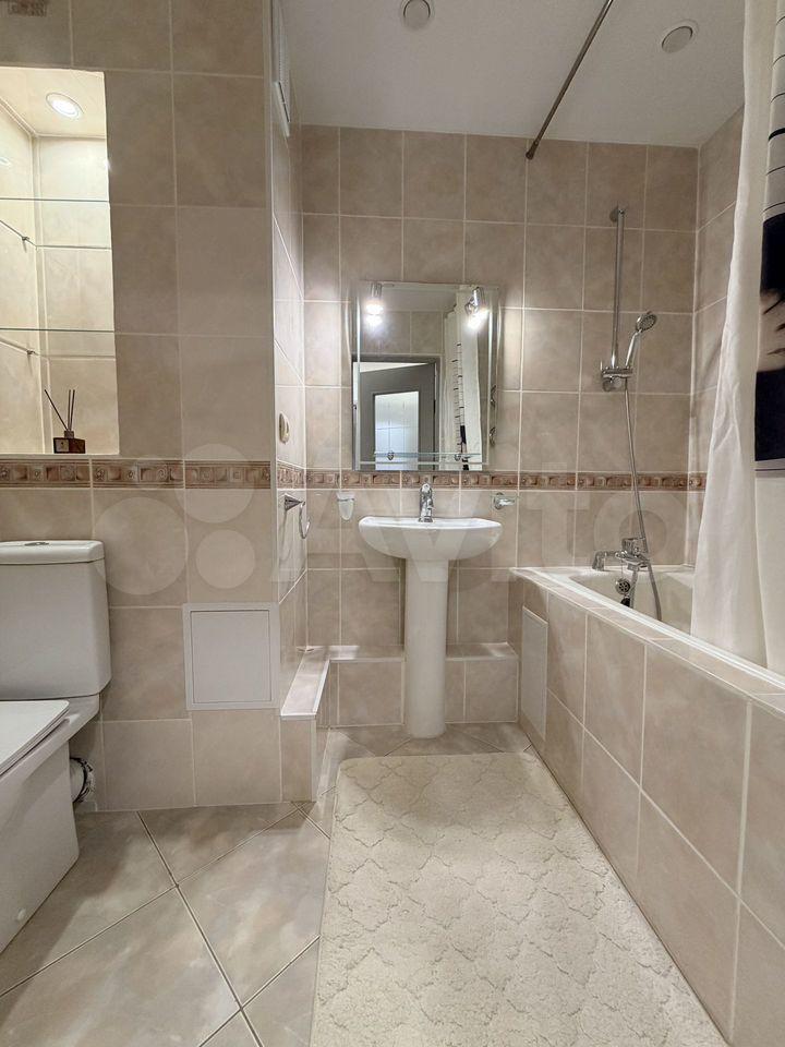 В квартире выполнен дизайнерский ремонт. Просторная гостиная оборудована современной мебелью, включая удобный диван и шкафы. Кухня оснащена необходимой бытовой техникой, включая холодильник и плиту. В ванной комнате установлена стильная душевая кабина.
