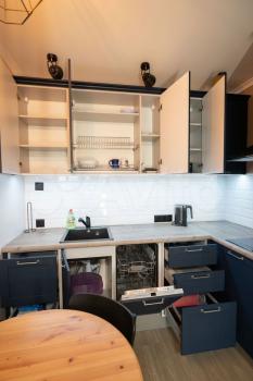 санузел - совмещённый, мебель - кухня, холодильник, плита, микроволновка, стиральная машина, телевизор.