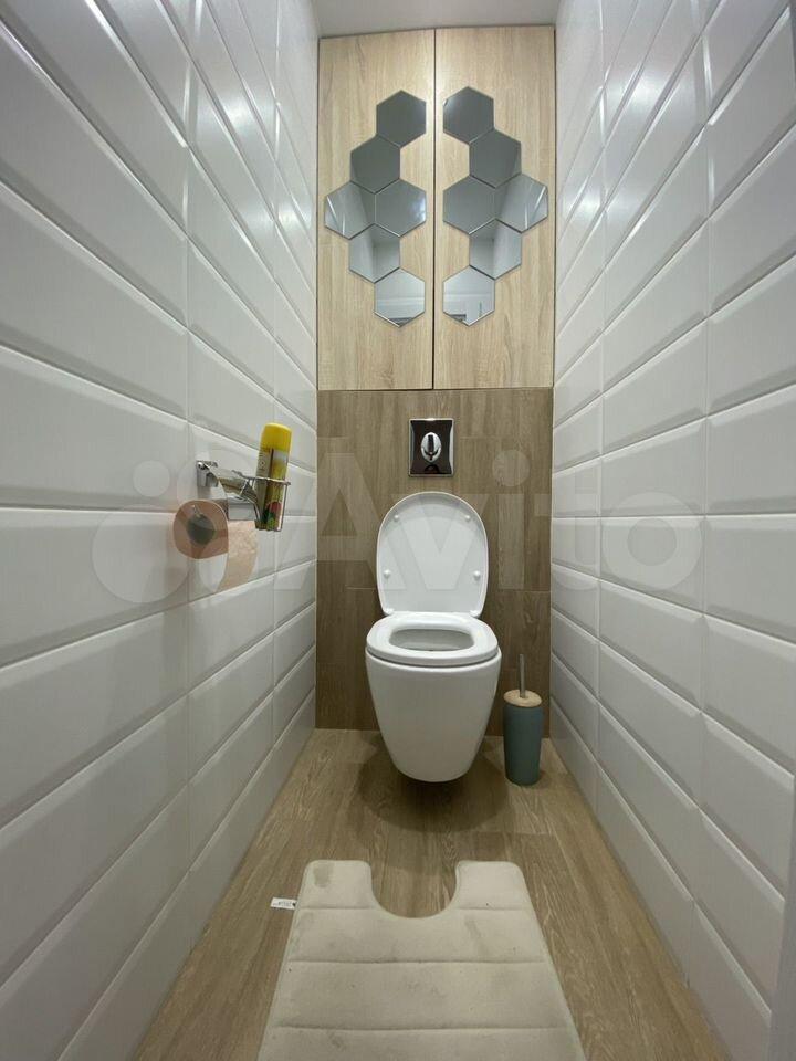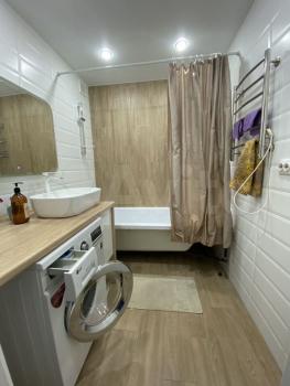 Санузел совмещенный, выполнен в современном стиле. Дом оснащен пассажирским и грузовым лифтами, парковка за шлагбаумом во дворе.