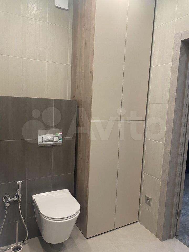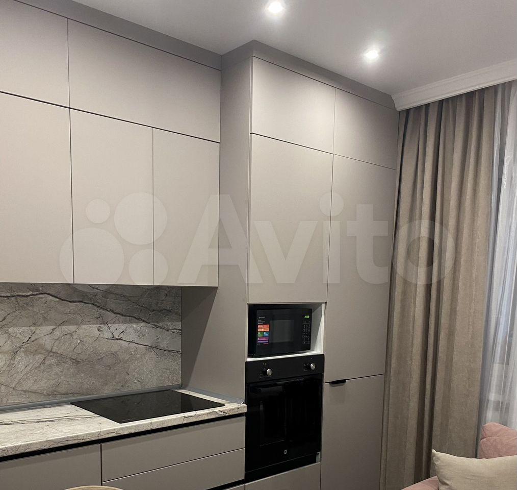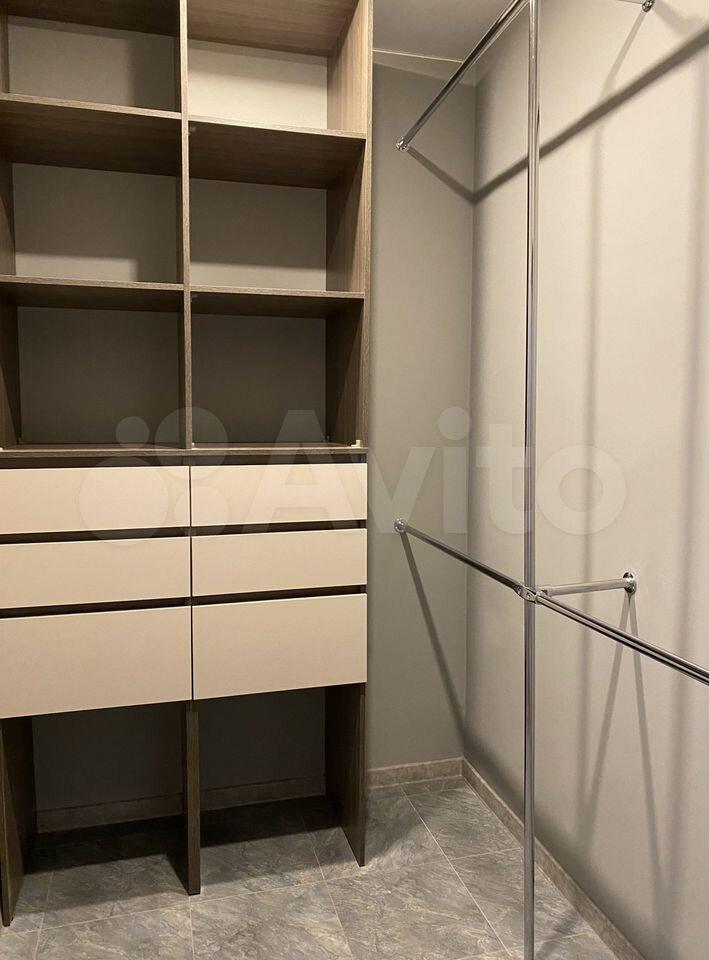 Полностью обставлена мебелью и бытовой техникой (2 телевизора (спальня, кухня), кондиционер (охлаждение/обогрев), встроенный холодильник, индукционная варочная панель, духовой шкаф, микроволновая печь, посудомоечная машина, система очистки воды, стиральная машина, водонагреватель). Вместительная гардеробная и гладильная. В кухне-гостиной раскладывающийся диван.