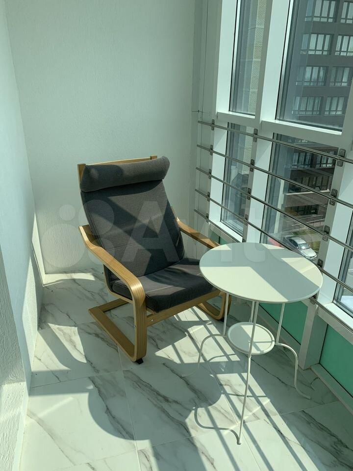 - На балконе: уютно оформленная зона отдыха и большой угловой шкаф для хозяйственных нужд.