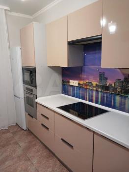 Абсолютно новая кухня со встраиваемой техникой (посудомоечная машина, духовой шкаф, плита, холодильник, микроволновая печь, вытяжка, чайник), смеситель, с подключенным фильтром для питьевой воды, встроенные в столешницу розетки, подсветка на кухонном фартуке.